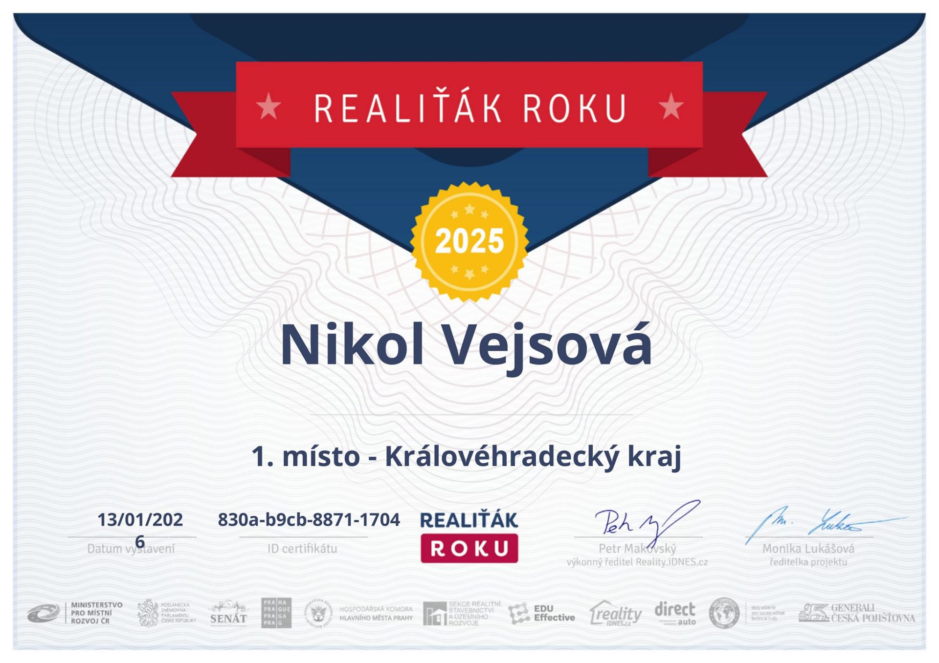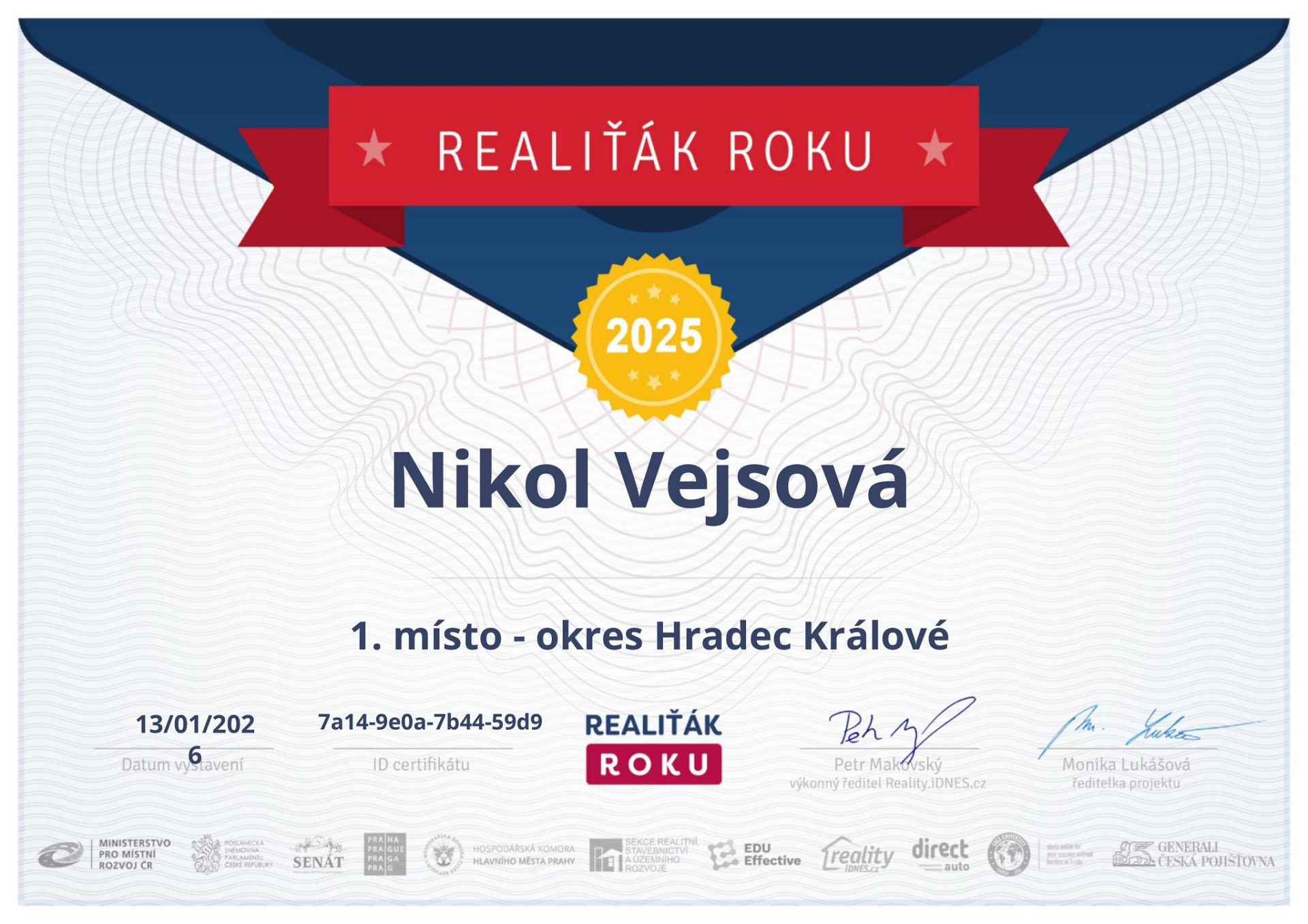 Nasbírala jsem zkušenosti v realitní sféře. V hlavě se mi zrodilo spousty nápadů, které jsem začala realizovat a je to tu. Stala jsem se velkým pomocníkem a průvodcem s lidským přístupem a férovým jednáním v oblasti realitních služeb.